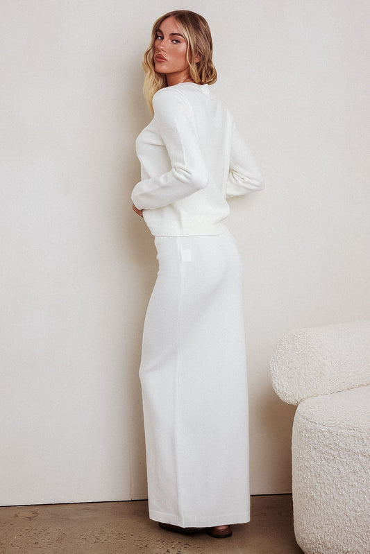 Autumn Breeze Knit Maxi Skirt Off White