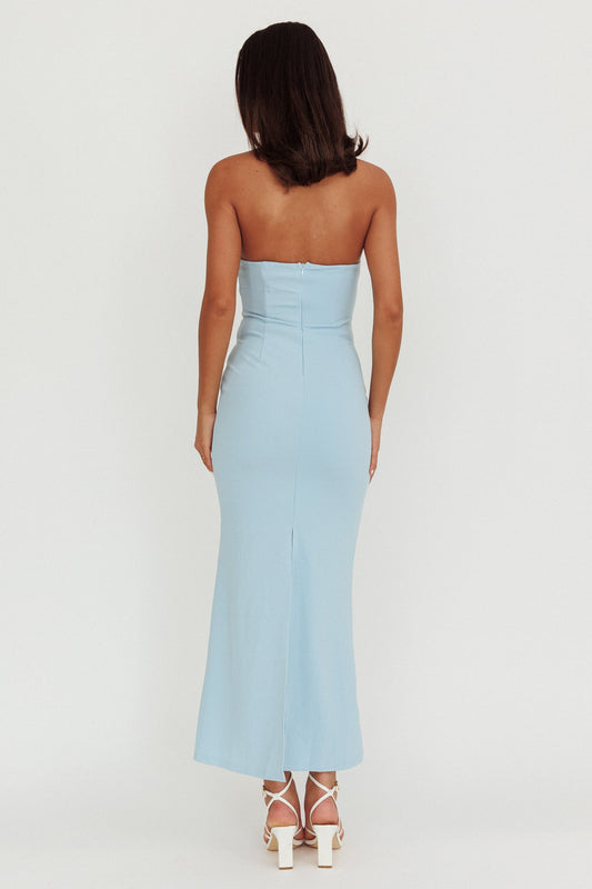 Well Versed Strapless Pleat Bust Maxi Dress Blue