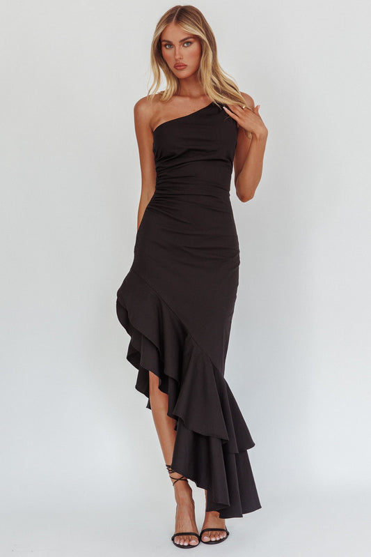 Bold Love One-Shoulder Asymmetric Hem Dress Black