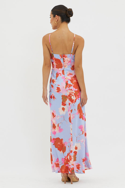 Carter Foldover Neckline Maxi Dress Blue Pink