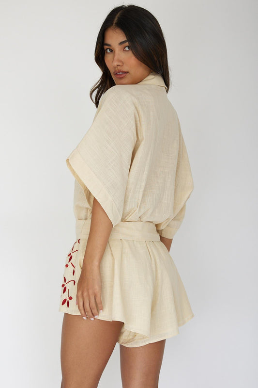 SAVE 49%Daytona Beach Button-Up Romper Beige