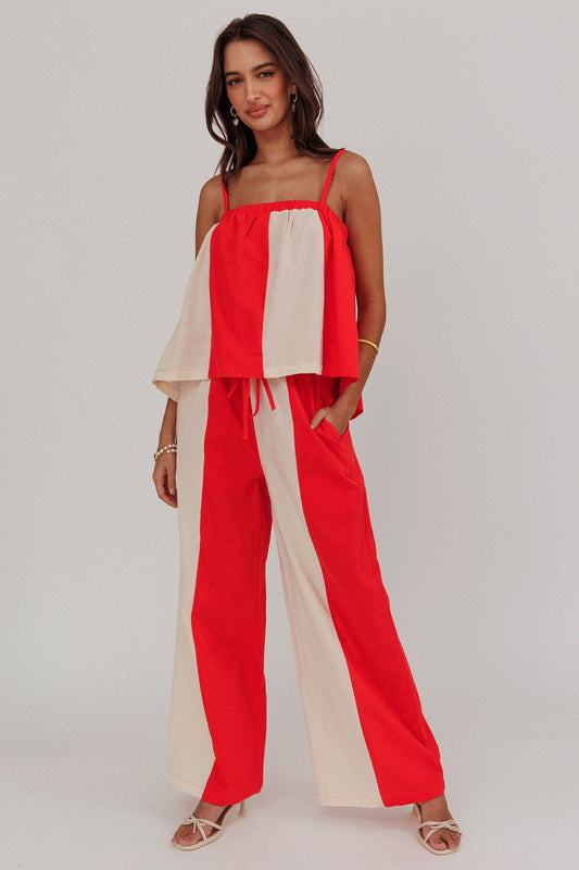 Dream Girl Contrast Wide Leg Pant Tomato Red