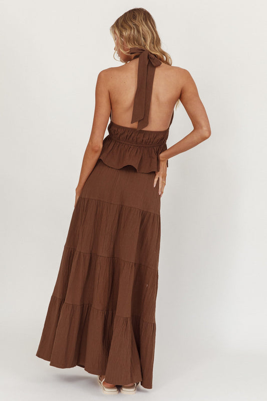 Under The Moons Tie Waist Maxi Skirt Cocoa