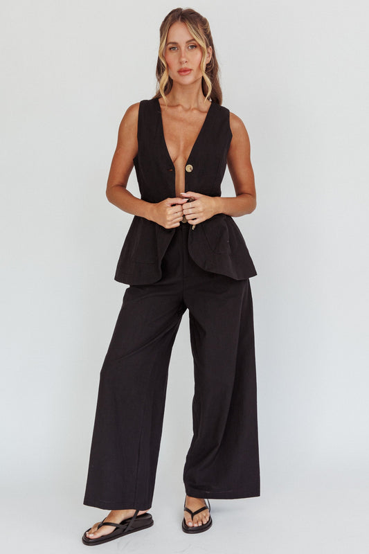 Angelica Button-Up Faux Leather Midi Skirt Black