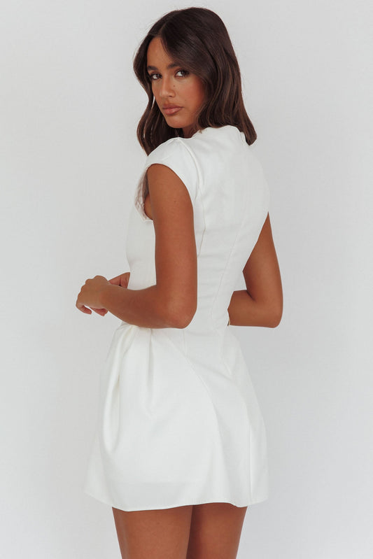 Girl Talks Cap Sleeve Puff Skirt Mini Dress Off White