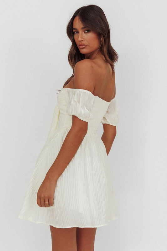 Perfect Worlds Off-Shoulder Mini Dress Textured Ivory