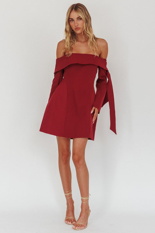 Aurora Sky Off-Shoulder Tie Mini Dress Wine