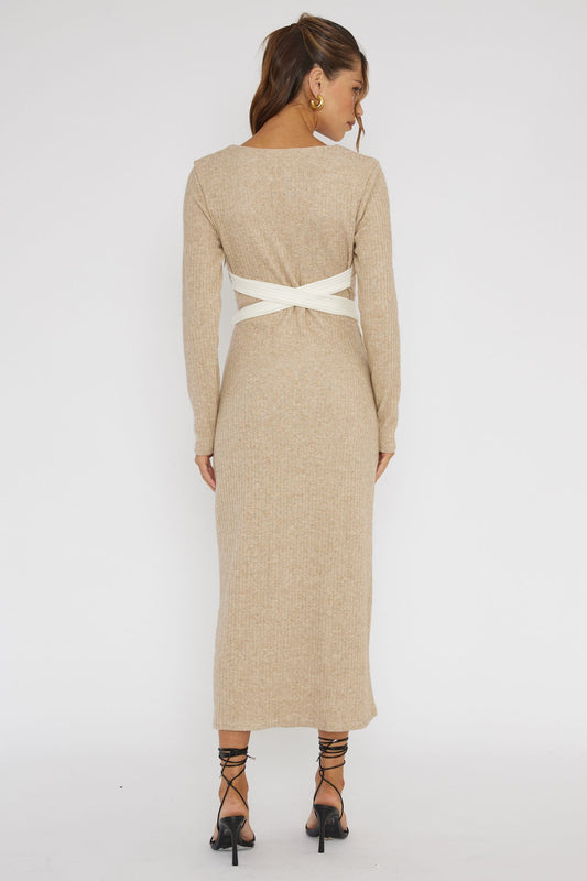 So Emotional Long Sleeve Cut-Out Knit Dress Oat