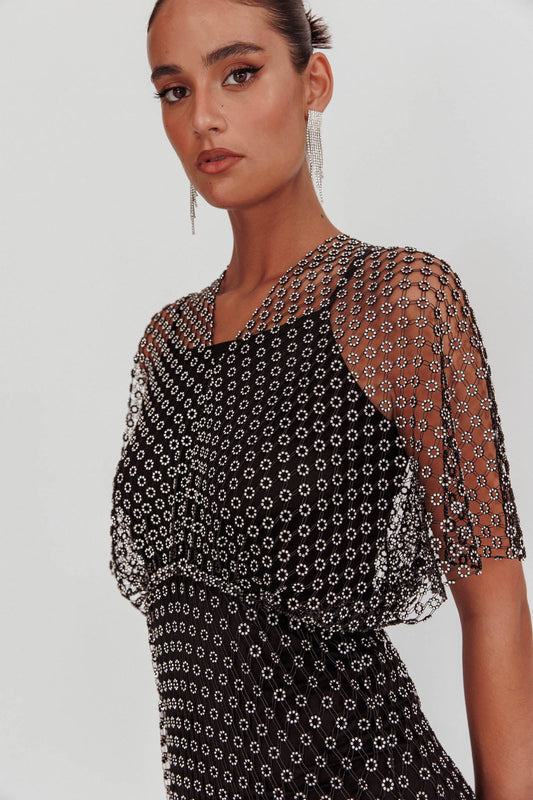 Moon Walker Sheer Rhinestone Mini Dress Black