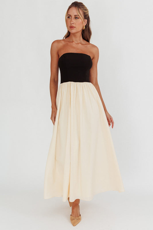 Princess Strapless Contrast Maxi Dress Black/Beige