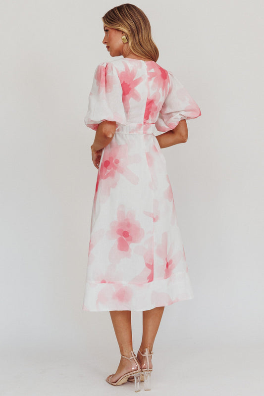 SAVE 49%Elias Puff Sleeve Midi Dress Blush