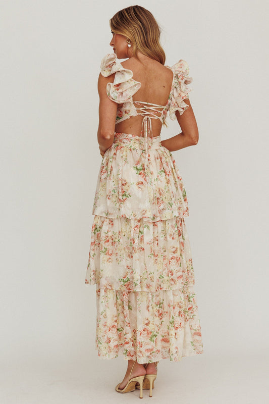 Roselle Backless Ruffle Maxi Dress Floral Multi