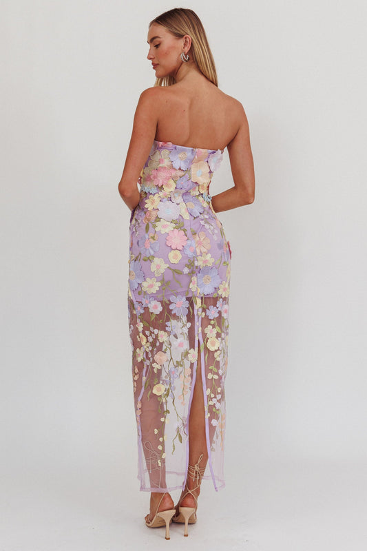 Euphoria Dream Embellished Mesh Maxi Dress Lilac