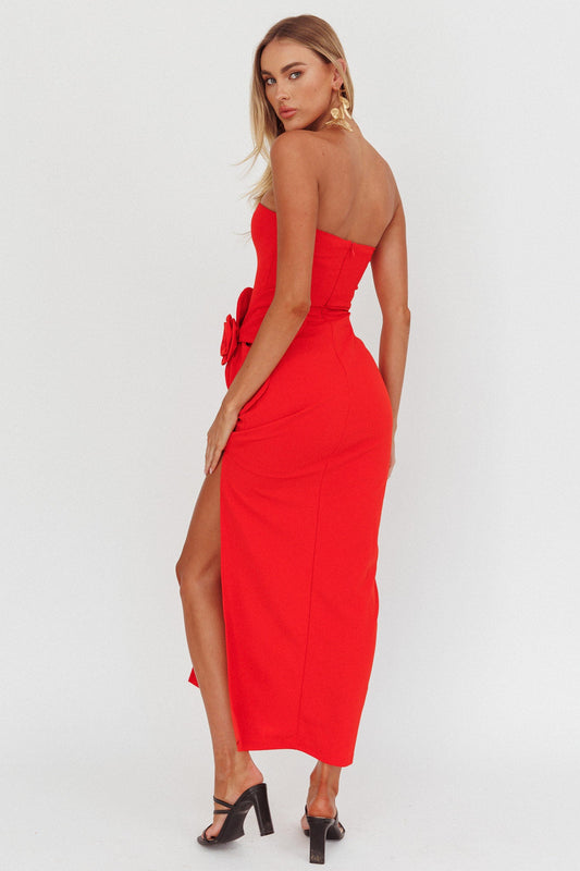 Italia Azure Halterneck Rosette Maxi Dress Blush