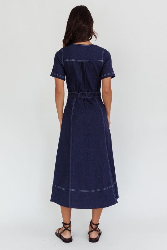 Real Talk Sweetheart Neckline Midi Dress Blue