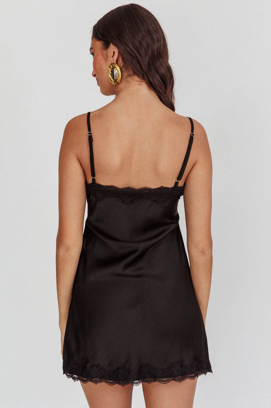 Spellbound Satin Mini Slip Dress Black