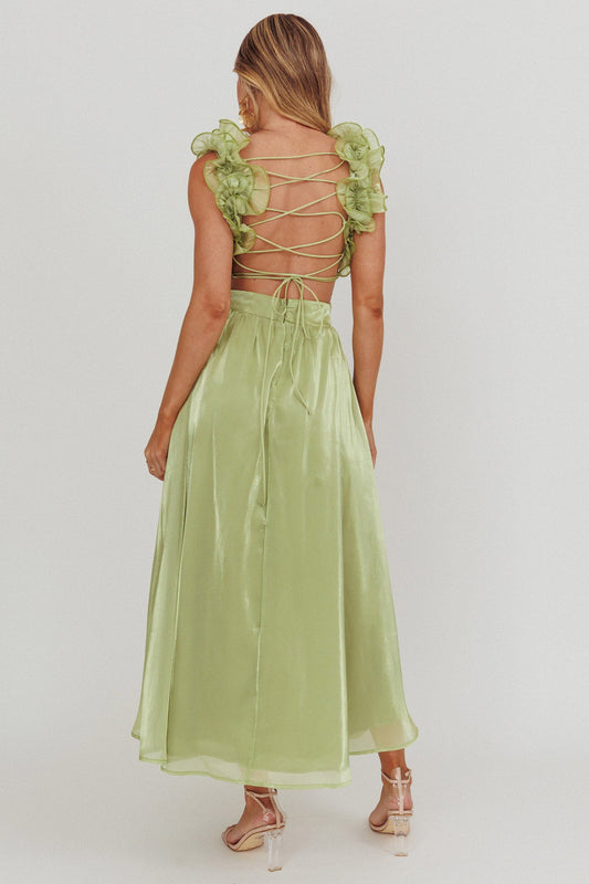 Oliana Off-Shoulder Mesh Maxi Dress Fern