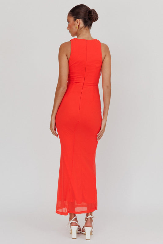 Piece Of Heaven Sleeveless Keyhole Mesh Maxi Dress Red