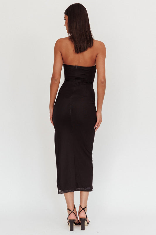 Clarita Sheer Ruched Maxi Dress Black