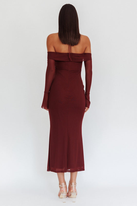 Numbers Game Off-Shoulder Halter Maxi Dress Chocolate