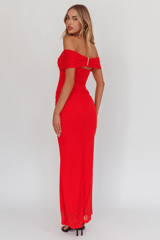Silver Moon Off-Shoulder Maxi Dress Blood Orange