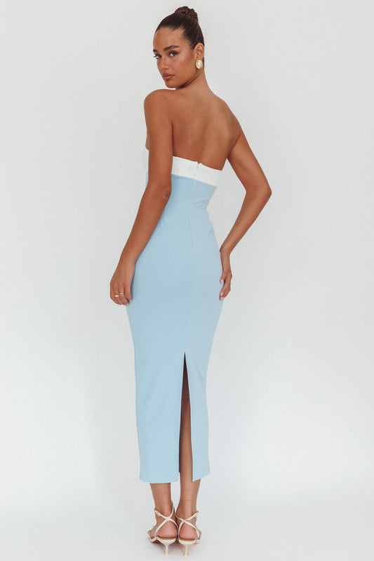 Sweetest Sundays Halterneck Open Back Dress Baby Blue
