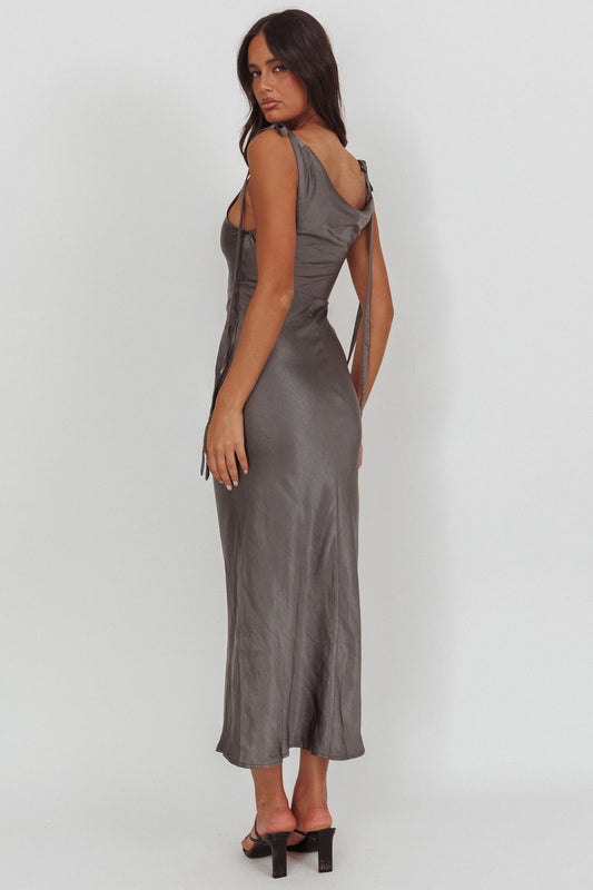 Glory Day Tied Shoulder Cowl Maxi Dress Charcoal
