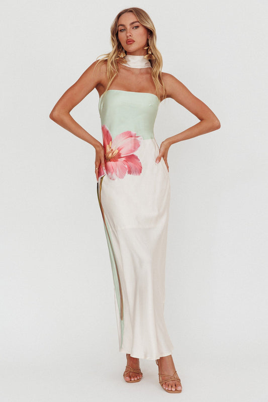 Sunday Mornings Ruched Bust Maxi Dress Floral Blush