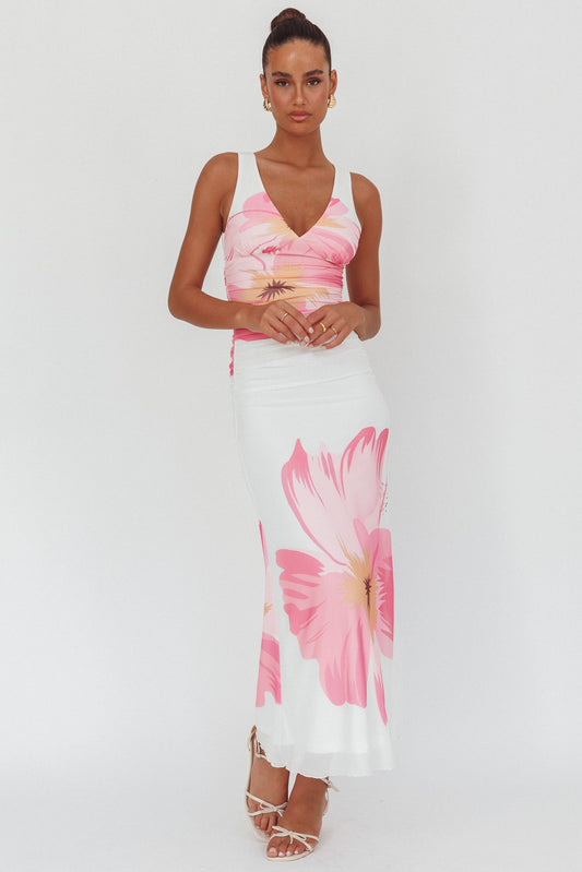 Oliana V-Neck Mesh Maxi Dress Hibiscus White/Pink