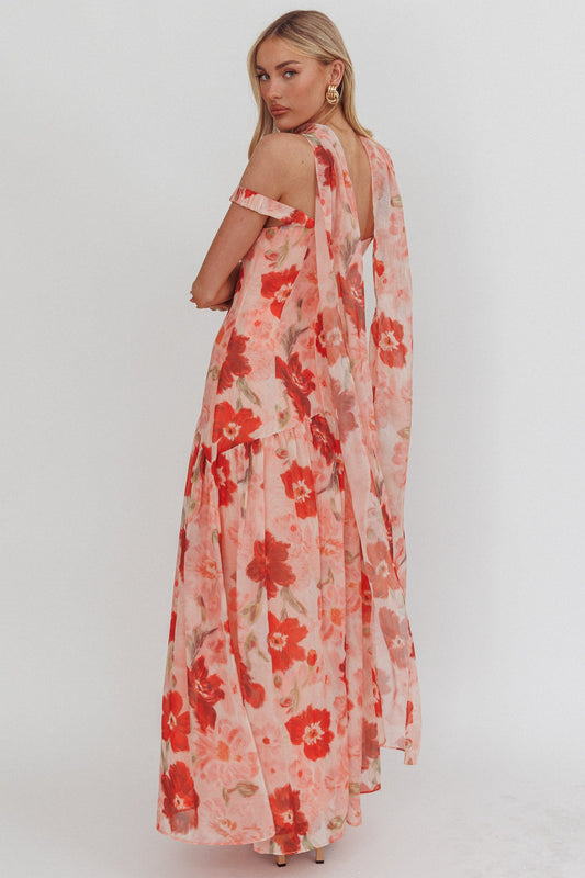 Veda Strappy Back Ruffle Maxi Dress Poppies Red