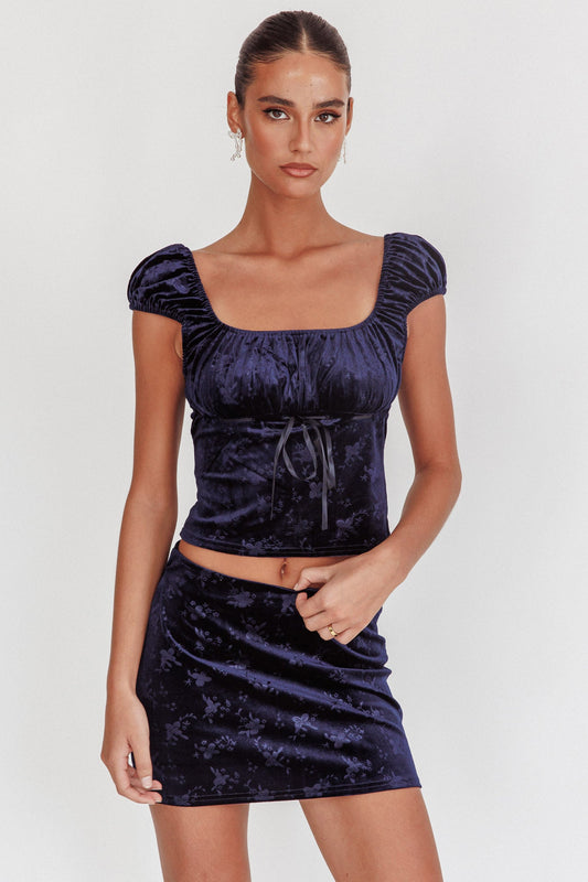Haydin Tied Bust Split Midi Dress Floral Navy