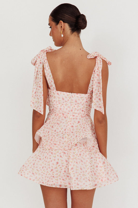 Oliana Tied Shoulder Tiered Mini Dress Peach