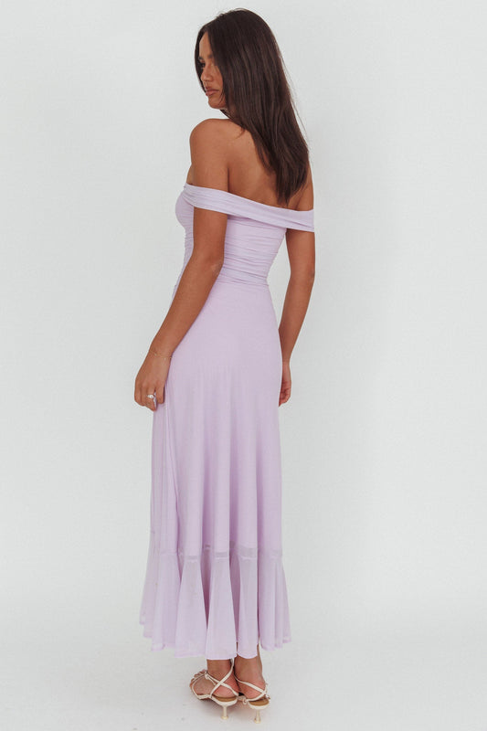 Moonlit Magic Off-Shoulder Split Maxi Dress Lilac