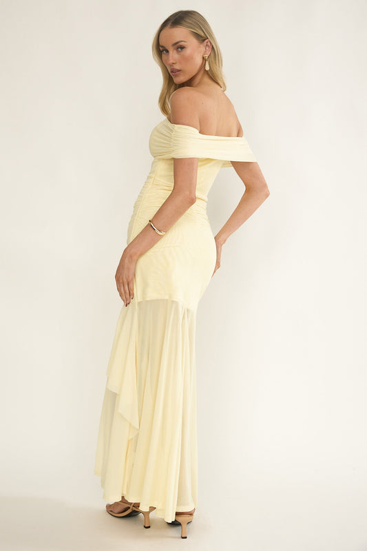 Kiarna Off-Shoulder Mesh Maxi Dress Butter