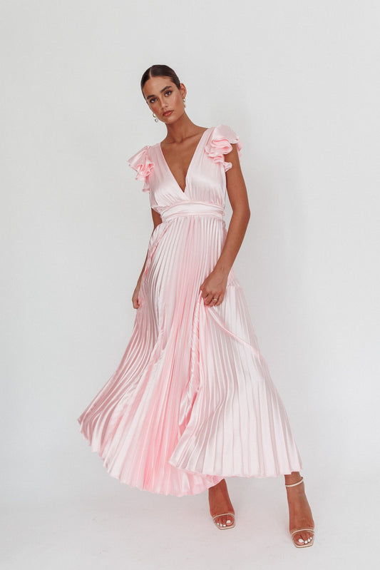 Enchantment Ruffle Sleeve Pleat Maxi Dress Pink