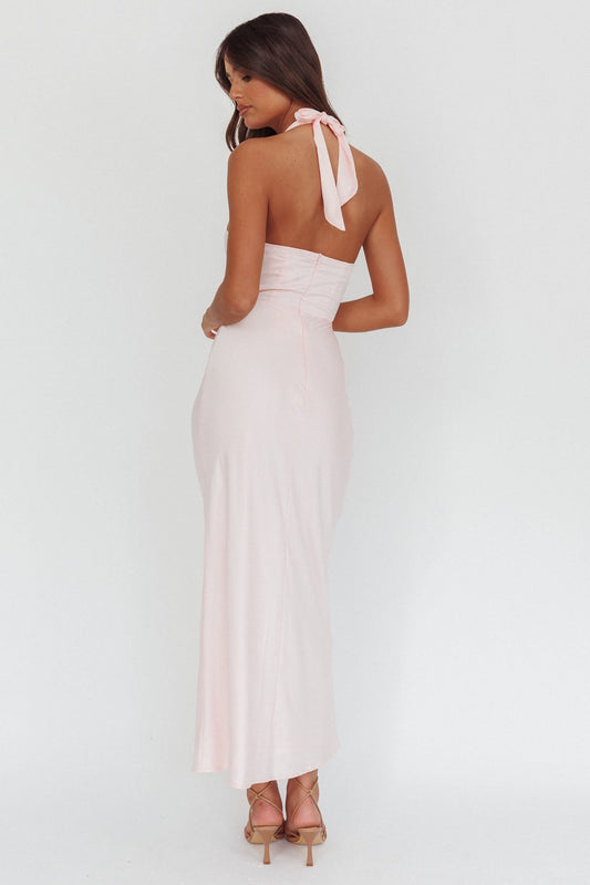 Devotion Twist Bust Halter Maxi Dress Baby Pink