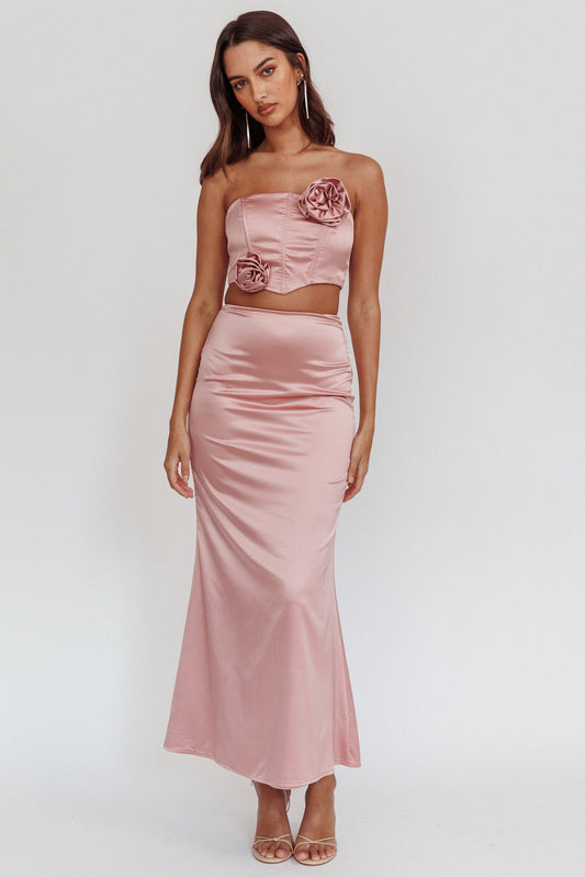Casi Palm Tree Embroidered Maxi Skirt Baby Pink