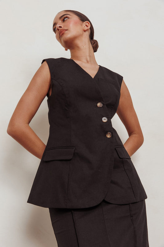 Loving Me Sleeveless A-line Mini Dress Black/Sand