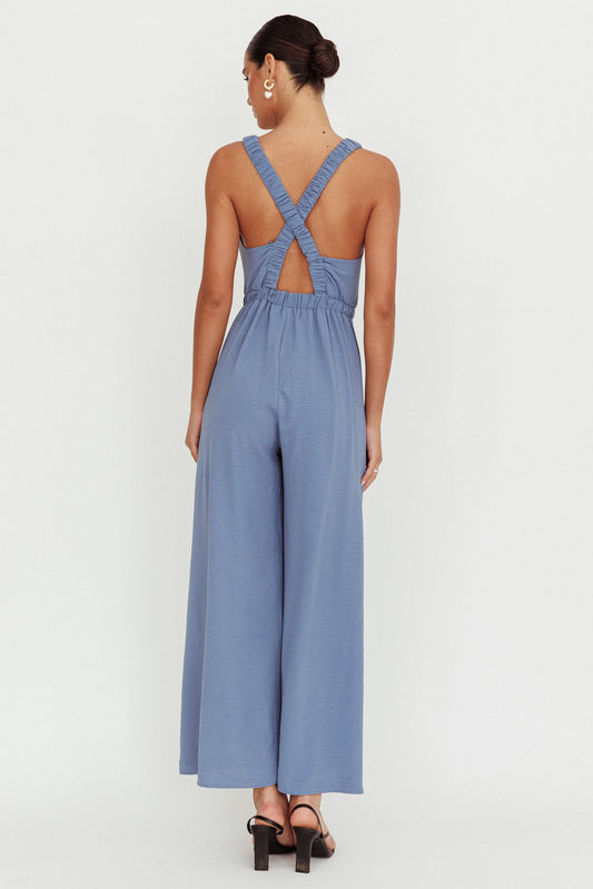 Italia Azure Halterneck Rosette Maxi Dress Oyster