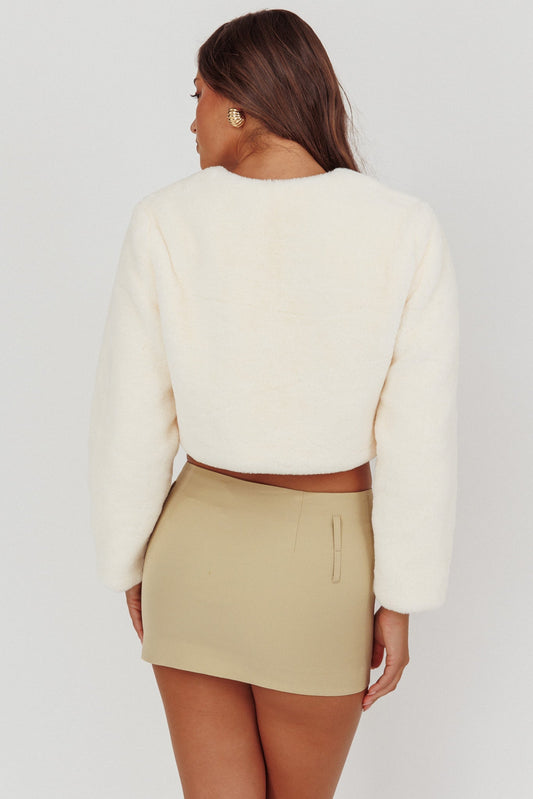 London Day Faux Fur Crop Jacket Cream