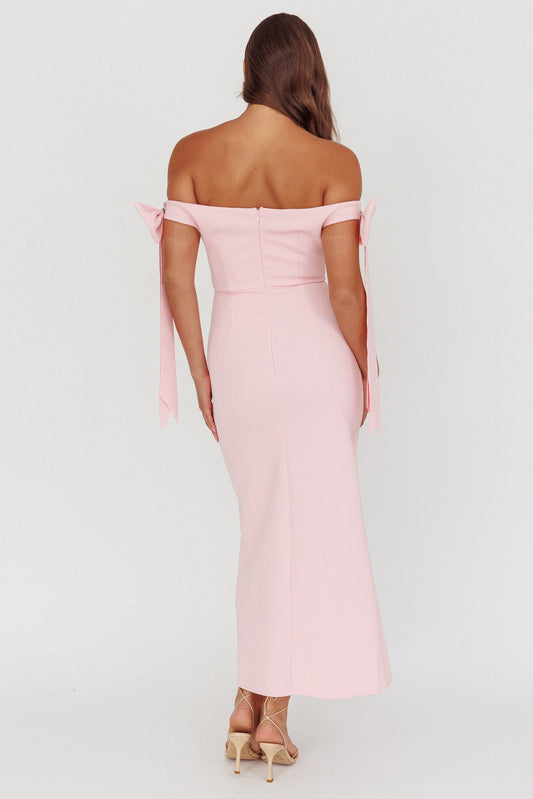 Have Faith Off-Shoulder Bow Sleeve Maxi Dress Baby Pink