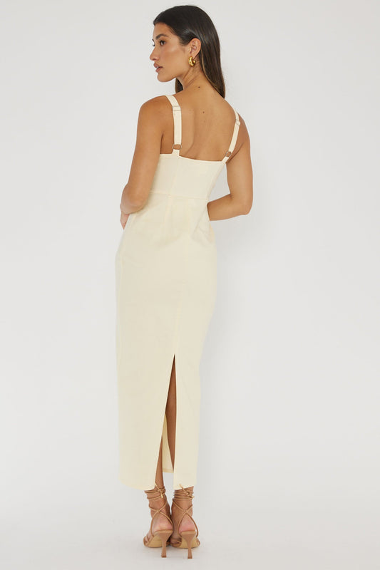 Namrata Twist Back Ribbed Midi Dress Lemon