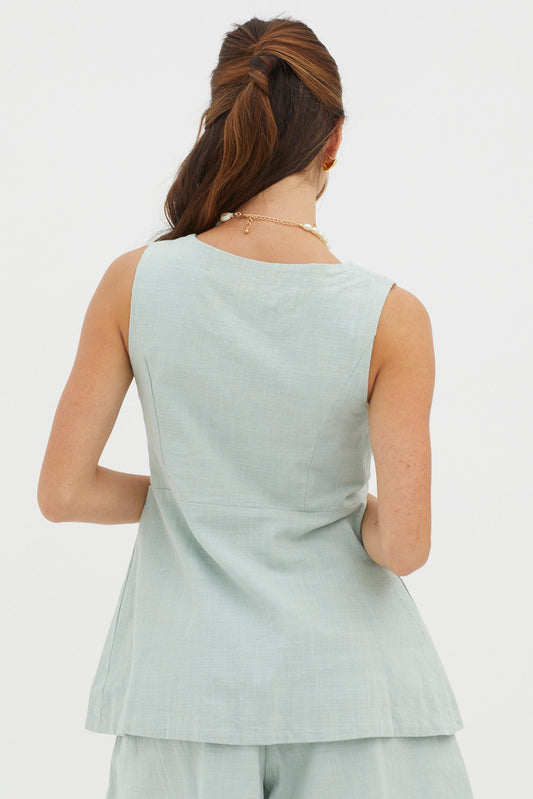 Philomena Button Pocket Vest Top Sage