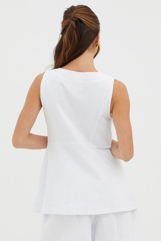 Philomena Button Pocket Vest Top White