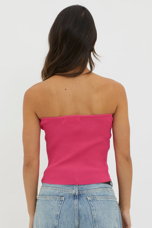 Off-Duty V-Neck Ribbed Knit Top Hot Pink