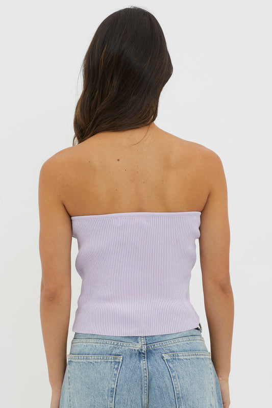 Off-Duty V-Neck Ribbed Knit Top Lilac