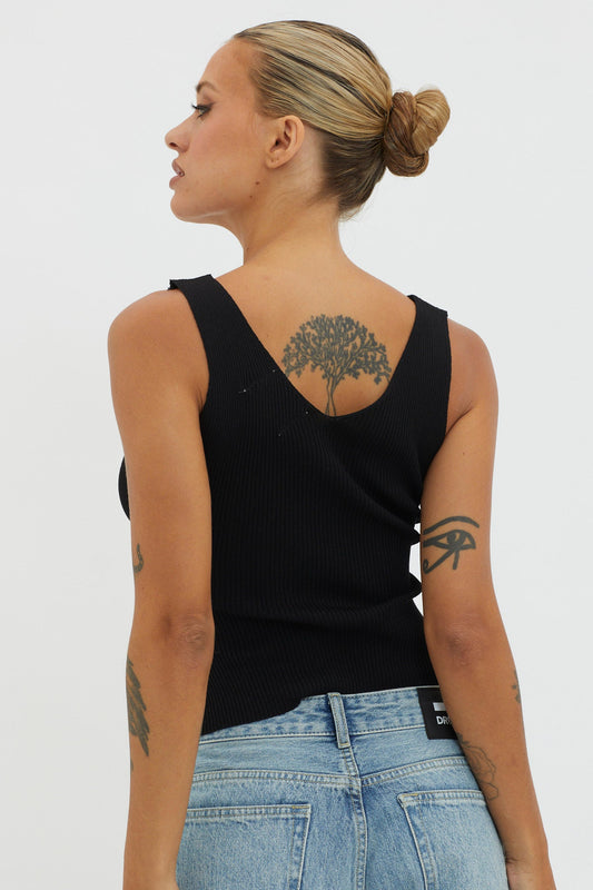 Off-Duty V-Neck Ribbed Knit Top Chocolate