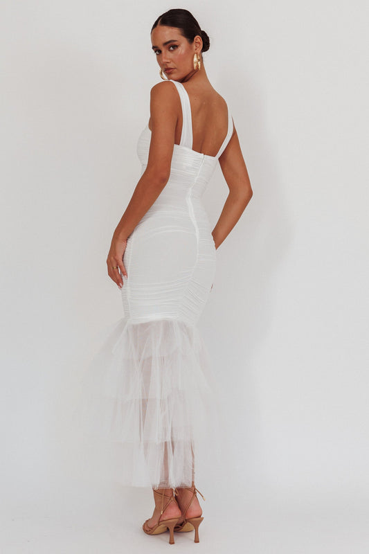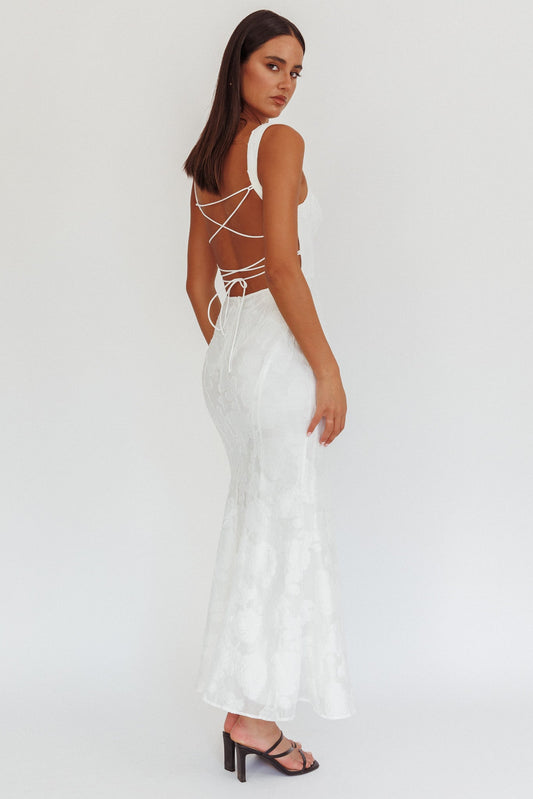 Autumn Moon Strappy Back Maxi Dress Textured White