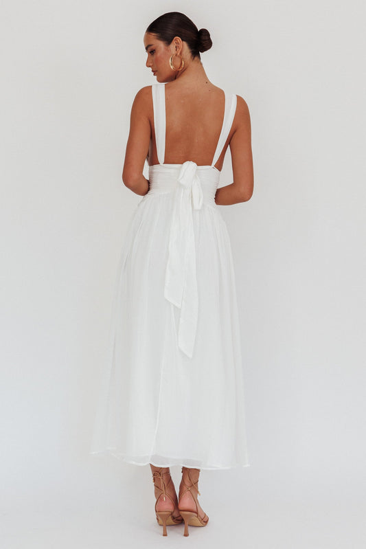 Sammi Ruched Waist Tied Back Maxi Dress White