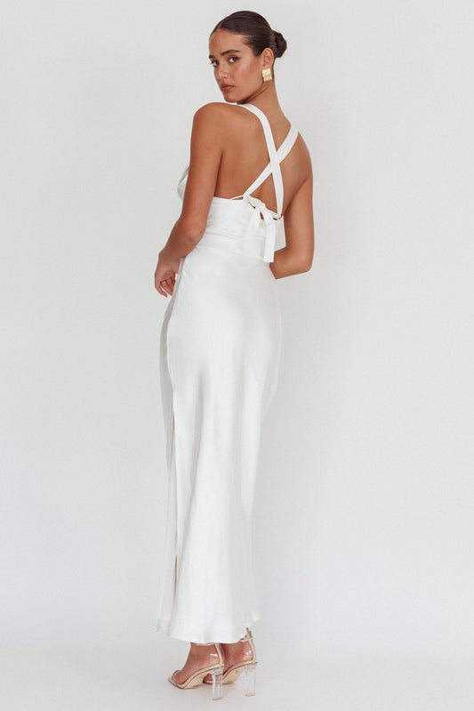 Ciao, Bella Tied Back Satin Maxi Dress Off White